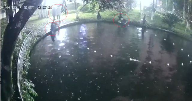 后来发现,不管是早上乘凉,还是去喂鱼食,莽子始终没有出现,就觉得有点不对劲了,于是就去调取了监控录像,看到4月23号晚上有人在公园的池塘里用渔网网鱼,随即报了警。