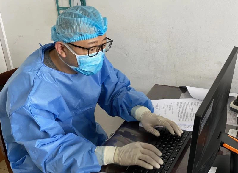 在牡期间,于铁夫作为医疗队临时成立的三级医师查房的责任主治医之一,除了完成日常查房工作,还要检查病历质量,帮助管床医生采集患者病史。对于患者提出的咨询问题,他总是和蔼可亲地细心解答。那段日子里,他经常是从隔离病房回到酒店洗漱完毕后,又再次返回当地医院工作区检查病历,办理出院事宜……医疗队成立核酸采集小组,他率先报名,踊跃参战。虽然组内实行轮班制,但只要他在岗,便告诉大家好好休息,不要折腾,自己可以独立完成。他主动当起医疗队员的“保健医”,还打趣地与患有消化系统疾病的队员约定好,解除隔离后帮助他们进行手术……