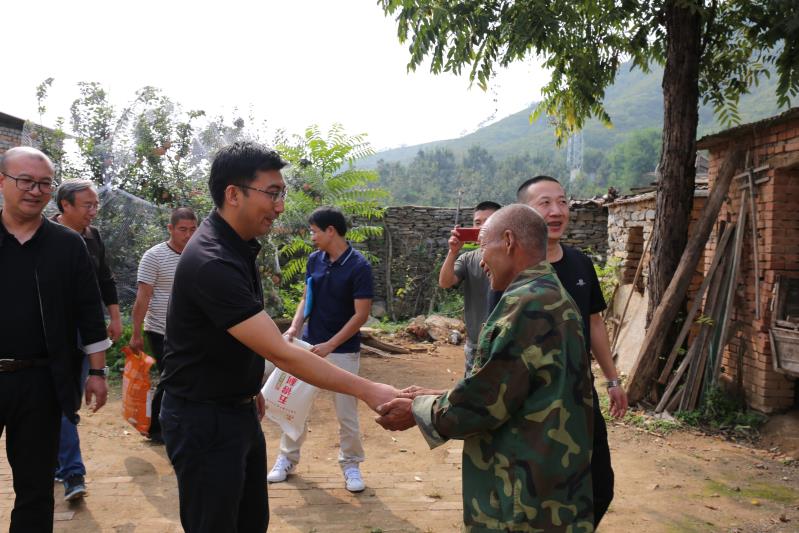 在国庆中秋双节来临之际,石景山区八宝山街道工委一行再次来到顺平县台鱼乡,走访查看了扶贫项目之一的驴棚,为贫困户送去了米面油等节日慰问品,为台鱼小学20名贫困学生送去了包括书包、文具、餐盒及水杯的学习礼包。