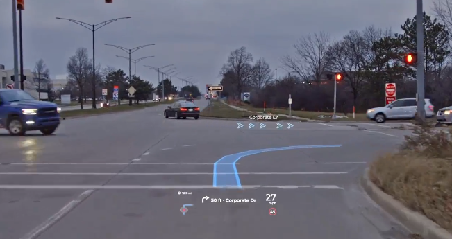 其中最具看点的莫过于AR HUD,这也是近年来比较火热的一项技术,可以让驾驶者在抬头显示系统的基础上,更加直观地看到路面详细信息,实现AR实景导航功能。