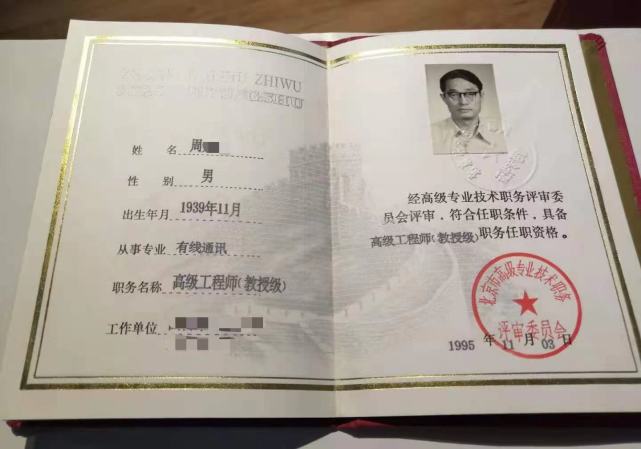 据老人在网帖中提供的图片资料显示,老人姓周,从事有线通讯专业,退休前为某厂为高级工程师(教授级),上世纪九十年代曾获北京市优秀新产品一等奖。