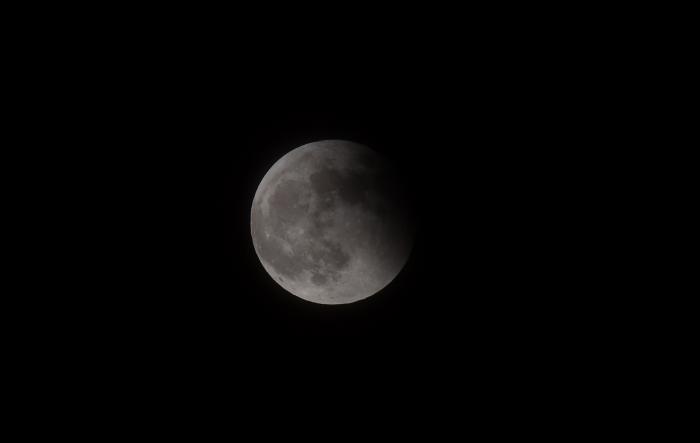 5月26日,20:02在北京东三环拍摄的月食。当天,本年度“最大最圆月(也称‘超级月亮’)”与月全食(也称“红月亮”)浪漫“邂逅”,北京有幸欣赏到一轮“超级红月亮”。