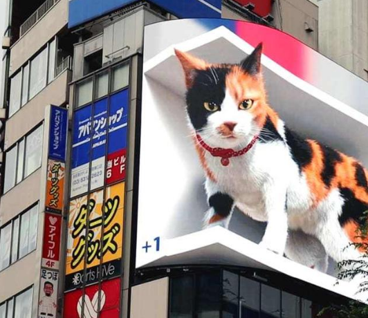 很多民众为了看这只3D猫,特意跑到播放大楼附近。它也在日本社交网络上掀起了不小的关注度。一名大学生在接受日本富士新闻网采访时说,“感觉它好像随时要跳出来一样。”一对夫妇则激动地表示,“我们是特意来新宿看它的,实在是太可爱了。如果真的有这么大一只猫就好了”。有日本网友说,“在中国成都有裸眼3D太空飞船,在韩国首尔有裸眼3D巨浪,现在日本新宿也有了自己的裸眼3D猫。日本人很喜欢猫,这很有日本特色”。