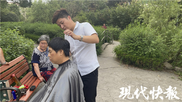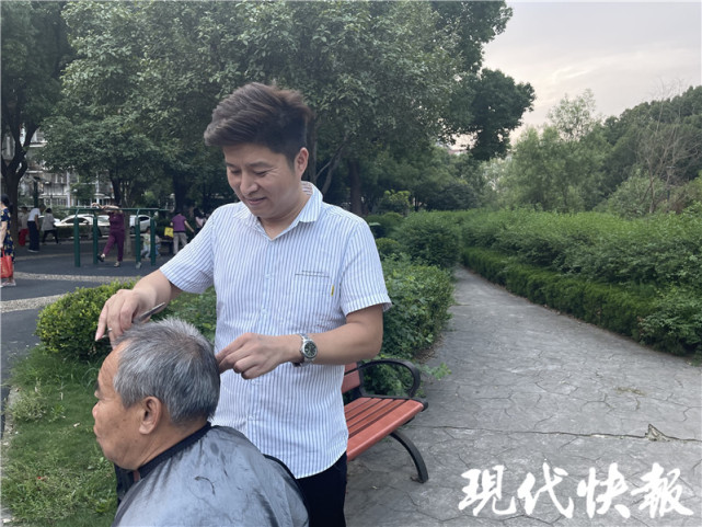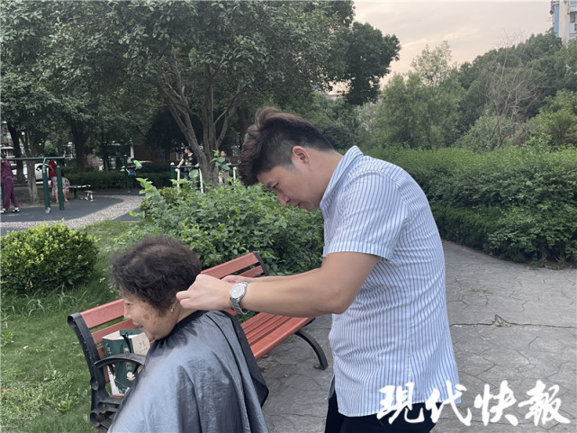 傍晚六七点钟,在南京市雨花台区景明佳园小区的广场上,一个“露天流动发廊”又开始忙活了。每到这个时候,理发师小韩就拿着理发工具包和小凳子,出现在小区广场上,开起“露天流动发廊”——基本上每隔两周,他就来这里给老人们免费理发。