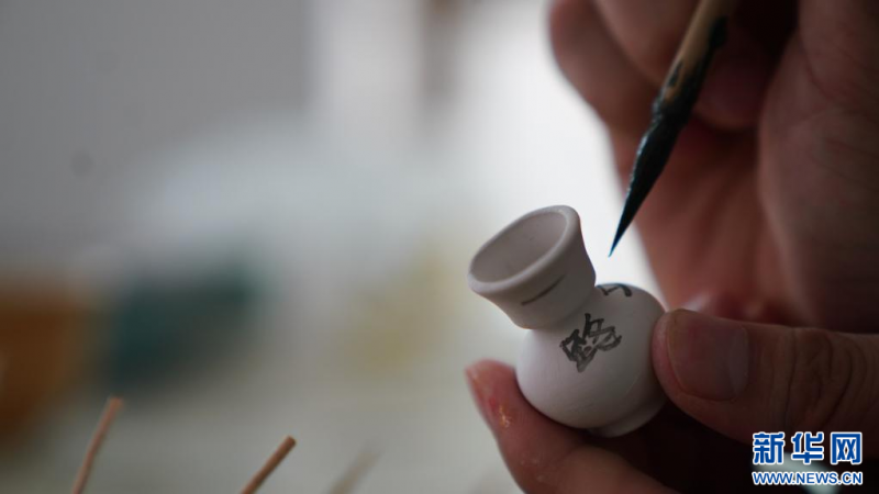 7月15日,陈帅在一件袖珍瓷作品上绘画(新华社记者 胡晨欢 摄)