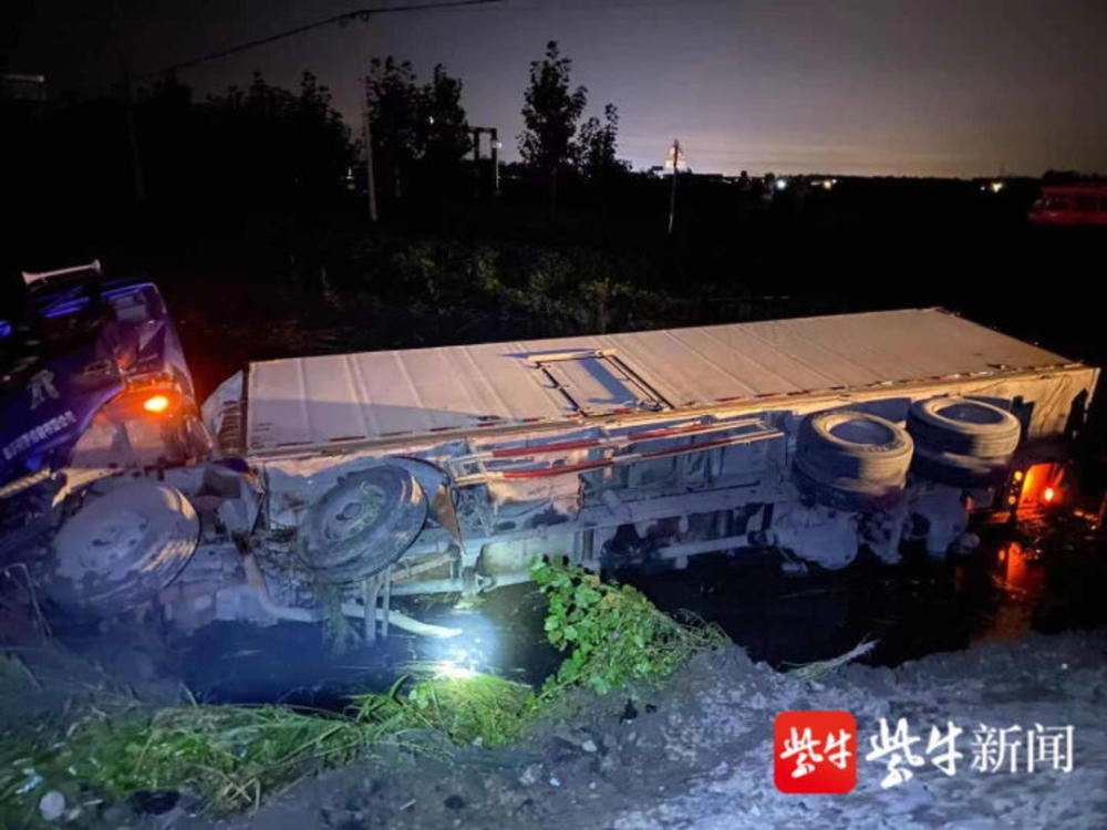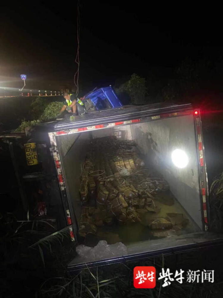 货车侧翻掉入河中,伤者无碍,警民连夜9小时徒手搬运18吨冷冻猪肉