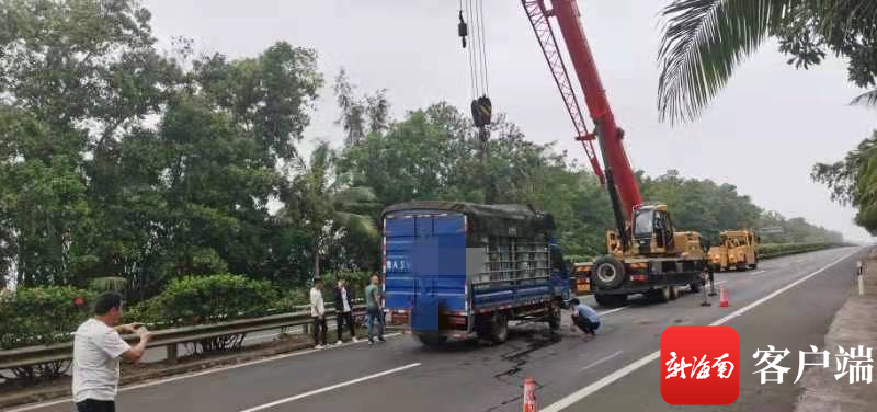 西线高速澄迈段一货车侧翻撞到小轿车 交警提醒雨天路滑请小心驾驶