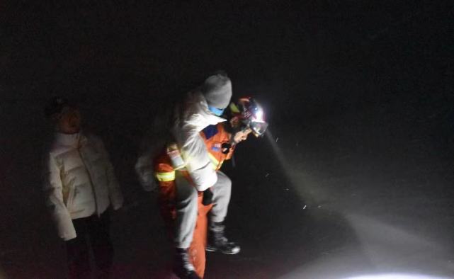 3时30分,搜救队员在海拔4105米的地方发现了被困的2名游客。1名女性游客体力不支,搜救队员采取接力的方式将其背至山下。