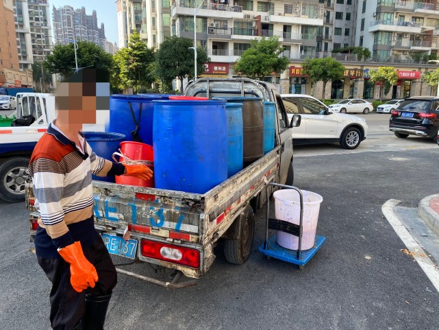 12月8日,广东肇庆市鼎湖区城管联合执法队在鼎湖区坑口街道万福路巡查执法时发现,一辆轻型栏板货车正在收集和运输餐厨垃圾。经城管执法人员调查询问,收运人未经批准从事餐厨垃圾收集、运输活动,并拟将他用。