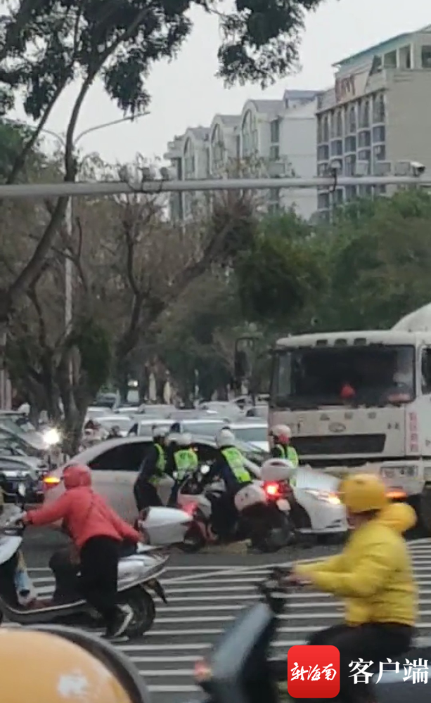琼海一轿车在斑马线上反复进退 多名交警尝试拦截未果