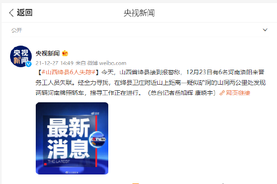山西绛县6名失踪者系河南洛阳来晋务工人员