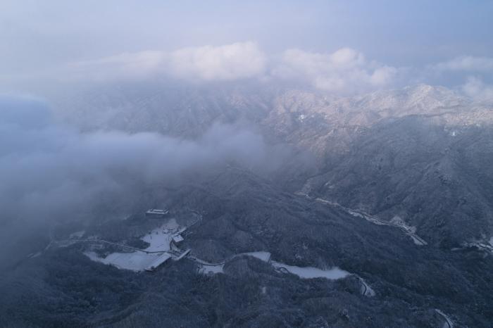 陕西宁陕县悠然山景区景色(无人机照片,2月8日摄)。