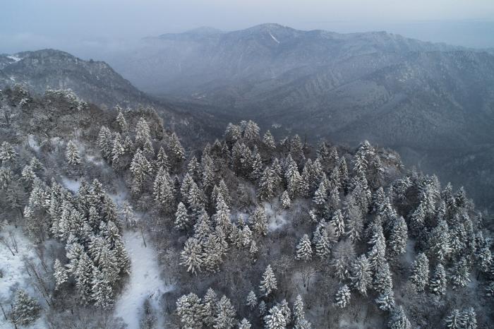 位于陕西宁陕县境内的秦岭平河梁景色(无人机照片,2月7日摄)。