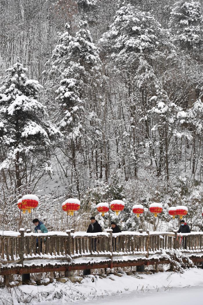 2月8日,游客在陕西宁陕县悠然山景区内游览。