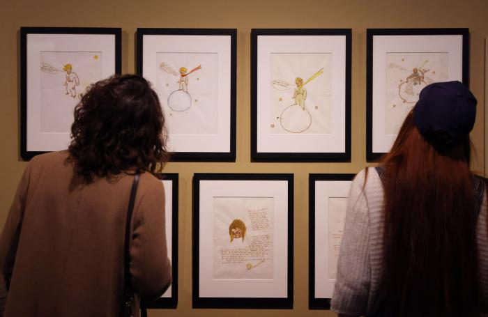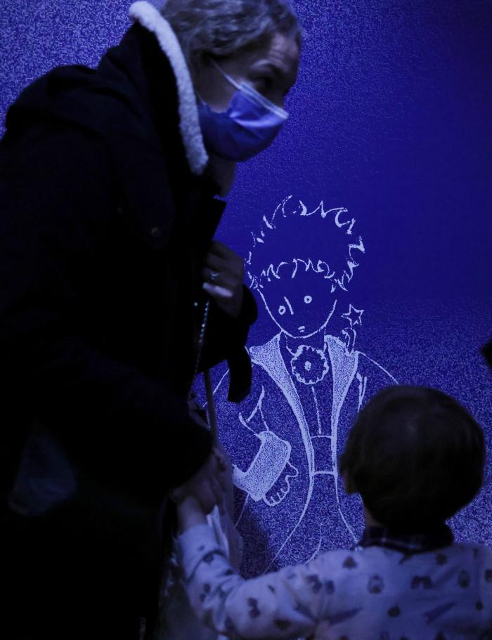 展览展出超过600件法国作家、艺术家安托万·德·圣·埃克苏佩里的艺术作品,其中包括首次在法国展出的原始手稿。2月23日,一对母子在法国巴黎装饰艺术博物馆举行的“遇见小王子”展览上参观。