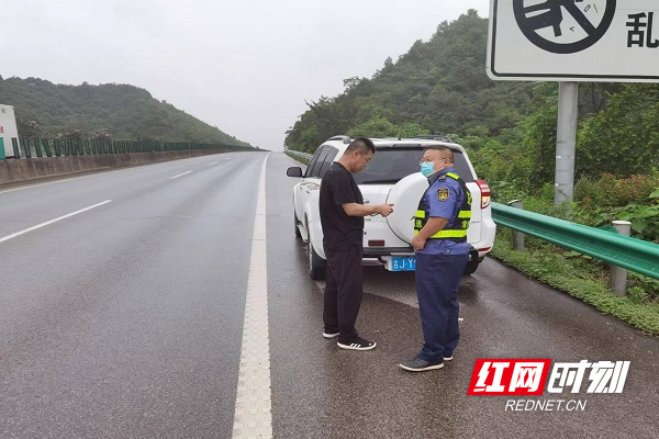 6月12日16时许,湖南高速集团常德分公司澧县路产大队路管员巡逻至二广高速K1878位置时,发现有一辆小车故障停在应急车道,当时正下着雨,路管员立即靠边停车做好安全警示措施。当事驾驶员一见路管员就焦急地问道:“我已经给你们高速救援转钱了,怎么救援车还没来啊?……”
