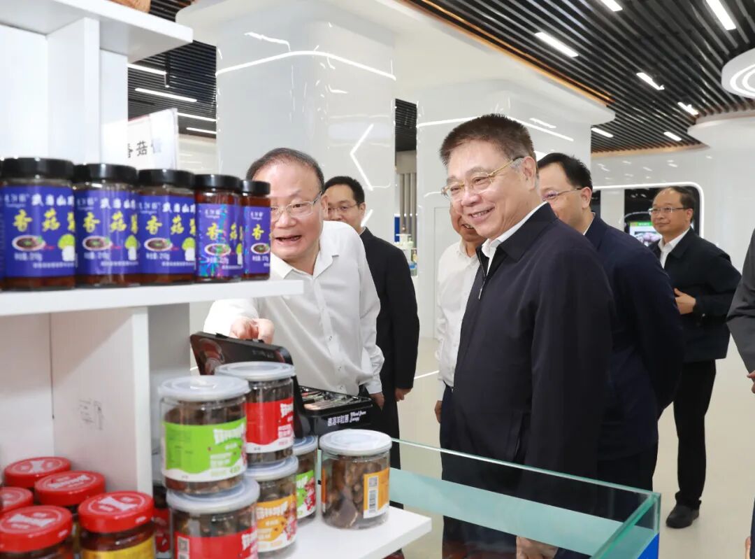 在郧西县现代农业产业园,王蒙徽察看园区企业产品展示和生产线,了解当地香菇深加工、外贸出口、菌草种植等情况,勉励企业加强市场开拓,实现更好发展,为促进地方经济发展和农民增收作出更大贡献。