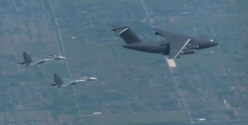 就此次训练的“长航时、远距离”特点,宋忠平解读称,航程长背后意味着滞空时间长。“在实战背景下,即便任务区域的距离并不远,但通过加油机的配合,可以让我们的战机滞空时间加长,这同样是夺取制空权的关键。”