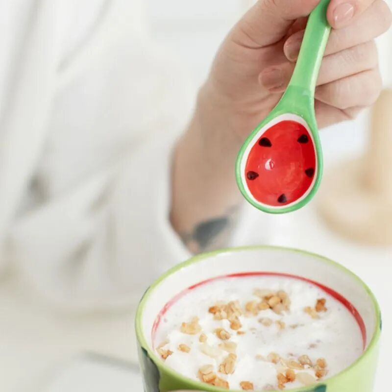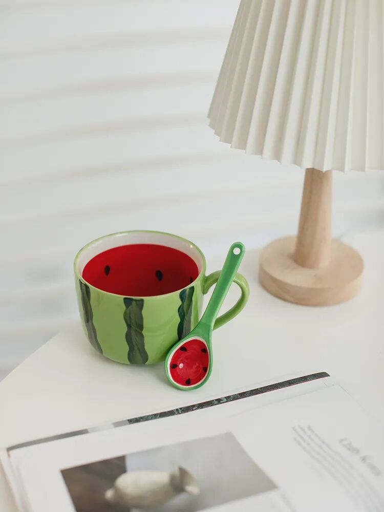 你还可以搭配西瓜小勺子,它的造型致别致,勺子上还有凸起的西瓜籽,非常有立体感。如果你有那种总是忘记喝水的朋友,这款西瓜陶瓷杯是一份非常贴心的礼物,用这个杯子高低喝上好几口。