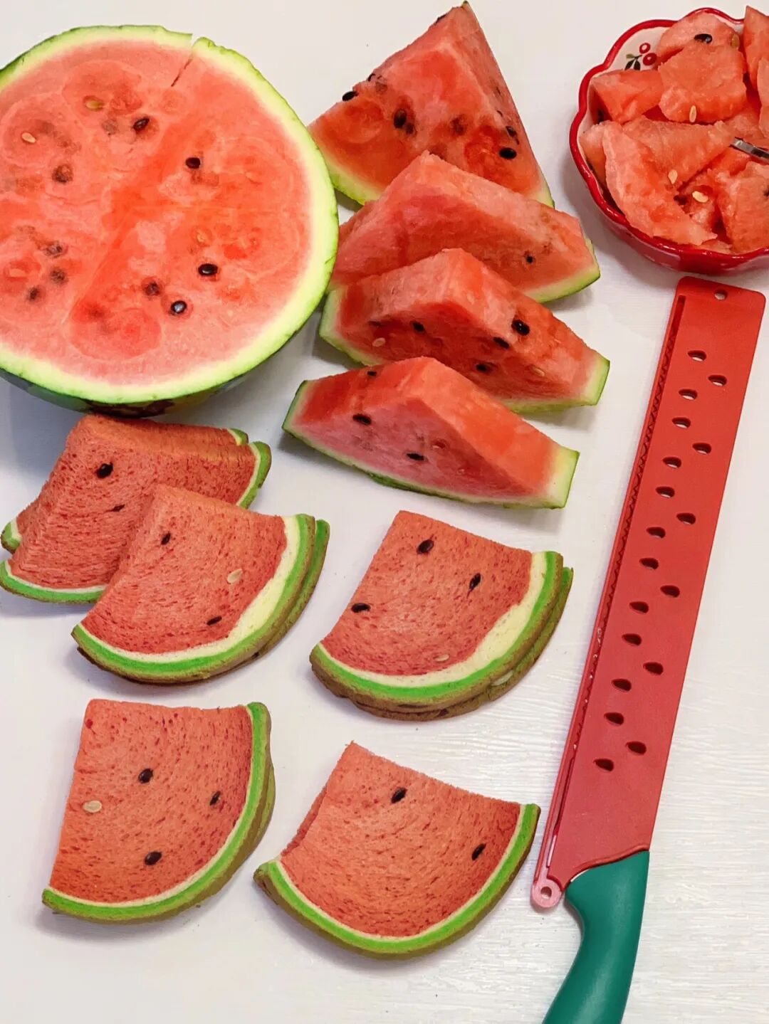 给小吃货准备的西瓜礼物当然要跟吃的有关啦,我找到了一款西瓜造型的吐司,不管是当早餐还是下午茶甜点都非常合适。