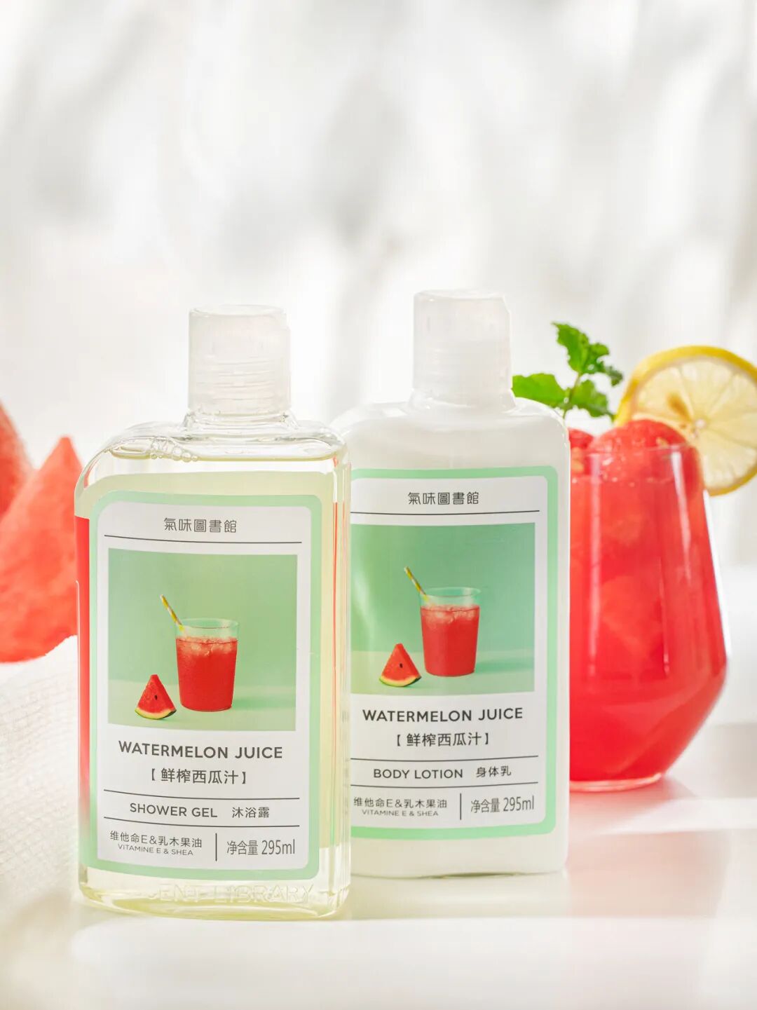 除了香水,气味图书馆的西瓜汁系列还有沐浴露、身体乳等,香调和香水一样,非常适合西瓜重度爱好者。每天用“西瓜汁”洗澡,让你感受到全身都被西瓜的清凉感所包裹。