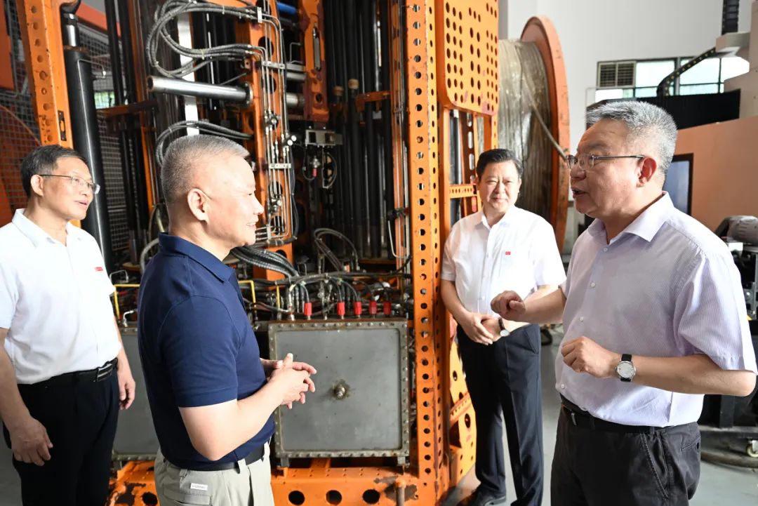 7月20日,沈晓明来到湖南科技大学,详细了解海底钻机研发历程,与万步炎教授亲切交流