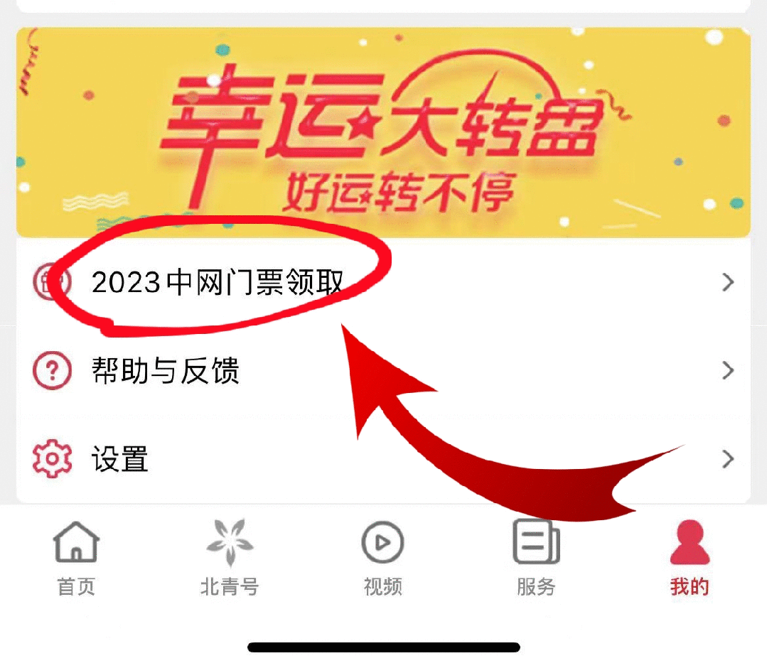 2、进入“我的”界面,点击“2023中网门票领取”选项,可查询到中奖记录并领取
