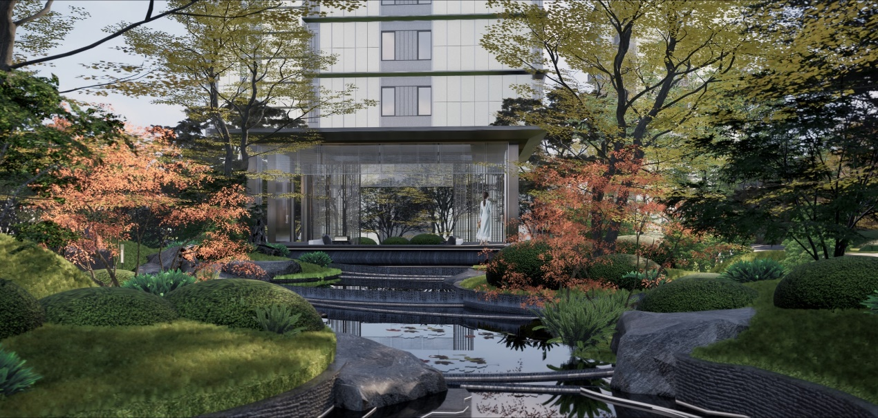 颐和生活离不开园林,它是建筑与土地的纽带,亦是生活与情感的升华。在园林设计中,颐和公馆运用“颐和”观念演绎生活,植入北京城深根的规正礼制文化,借南派古典私家园林的三进制院落布局“华庭、印山园、四序园”,构建礼序文化气质,同时追求自然山水的融情于景,让自然做功,精炼四时四序场景感受,提炼四季花园润泽生活质感,用“华庭、碧岫、红馆、疏黄、松照、涵碧、半夕、知秋、远香”九大画境打造京南府苑颐和公馆之下的“颐和九臻”,在空间开合、山水映衬的游园画卷中,给北京城南带来一个有园林的家。