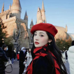 在穿搭上运用一些小配饰,让红色成为全套LOOK的点缀色,会更好驾驭。就像周洁琼搭配的一身黑色点缀红色贝雷帽+红黑撞色围巾,让整套穿搭更加亮眼又不失低调。红色帽子虽然适用场景较少,但是偶尔搭配一下新鲜感与活力感满分,尤其在冬日的黑灰世界里,一抹跳跃的红,挑动了沉闷的画面。