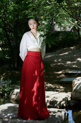 “中国有礼仪之大,故称夏;有章服之美,谓之华。”2023年以来,北京故宫、西安不夜城抑或是杭州西湖,身穿马面裙的中国姑娘无处不在。正如徐娇身穿的红色马面裙,就像一把燃烧的火焰,点燃中国人的文化自信。白色的纯洁无暇搭配热烈如火的红色,新式上衣搭配复古马面裙,颜色相互碰撞的美,风格相互融合的美,在这一套LOOK中尽显。辞旧迎新之际穿一套红色马面裙,新年氛围伴随着高能量而来。