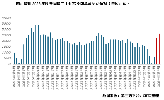 春节之后,二手住宅成交大幅反弹,周均成交量已超去年四季度周均水平。据CRIC监测数据,2024年第8周-第10周(2.19-3.10,下同)周均成交套数已达760套,超过了2023年四季度周均成交749套,达到了阶段性高位。深圳二手房市场能快速复苏与节后挂牌量增价跌密不可分,业主对后市房价看跌,在节后纷纷采取抛售策略,挂牌量激增,第8周-第9周每周新增挂牌量均超2200套,达到阶段高位,且业主多数想蹭这一波行情回暖卖房,七成以上业主降价,叠加节前限购优化政策及20日贷款利率大幅下调,二手房成交量呈快速回升势头。