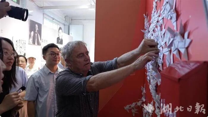此次新西兰克赖斯特彻奇市市长一行来访,纪念馆将这张合影赠予了来访团,来访团回赠纪念馆的礼物则是一本《路易·艾黎》传记。在展览互动区,市长菲尔·梅杰还贴上了一枚“和平鸽”折纸,以此致敬追求和平与正义的国际友人。
