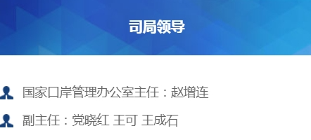 目前,国家口岸管理办公室设主任一名,为赵增连(同时担任海关总署办公厅主任);副主任三名,分别为党晓红、王可、王成石。