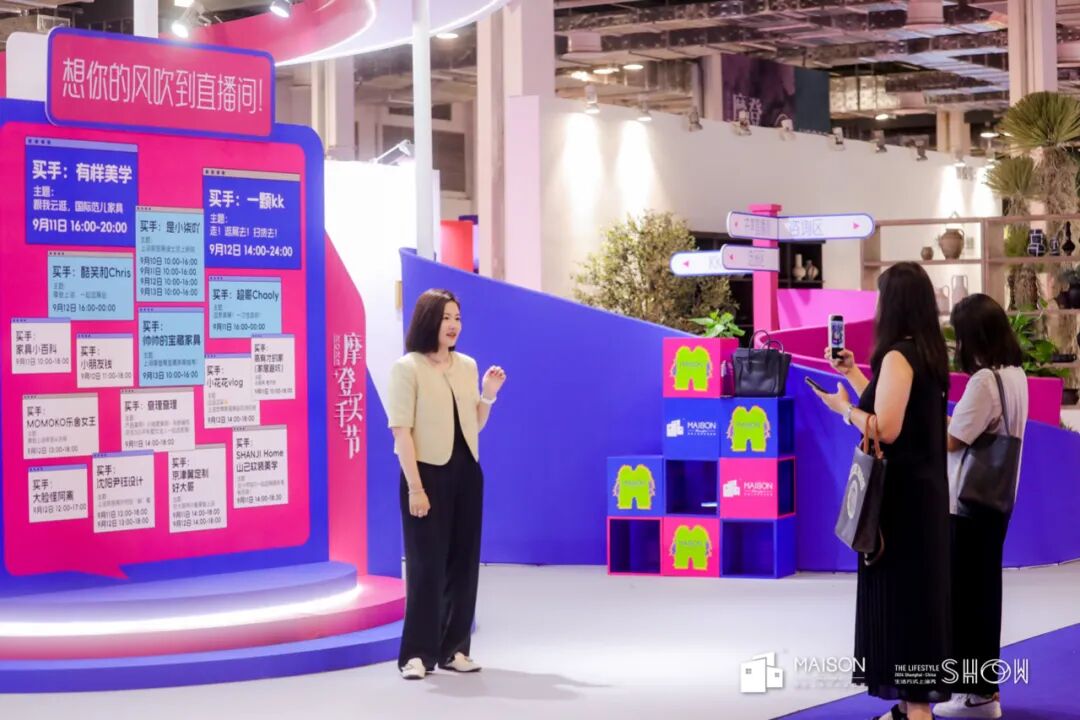 所以观展的过程中会发现,随时都可能看到有网红达人停停走走,逛展打卡、选品直播,那感觉就是,我们明明在一个真实的空间里,但我们随时随地在连接世界。有趣吧。