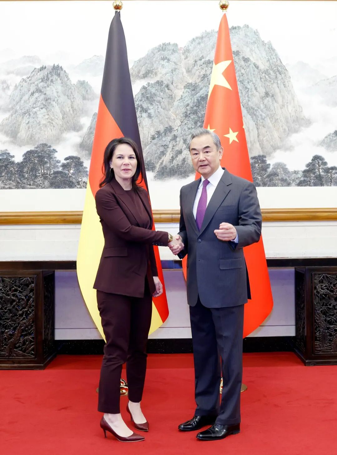 贝尔伯克表示,德中合作领域广阔,德方重视对华关系,坚定奉行一个中国政策。面对动荡不安的世界,同中方保持坦诚对话、加强战略沟通具有重要意义,有利于保持两国关系的正确发展方向,并为世界和平稳定做出贡献。德方赞赏中国为应对气候变化发挥的积极作用。