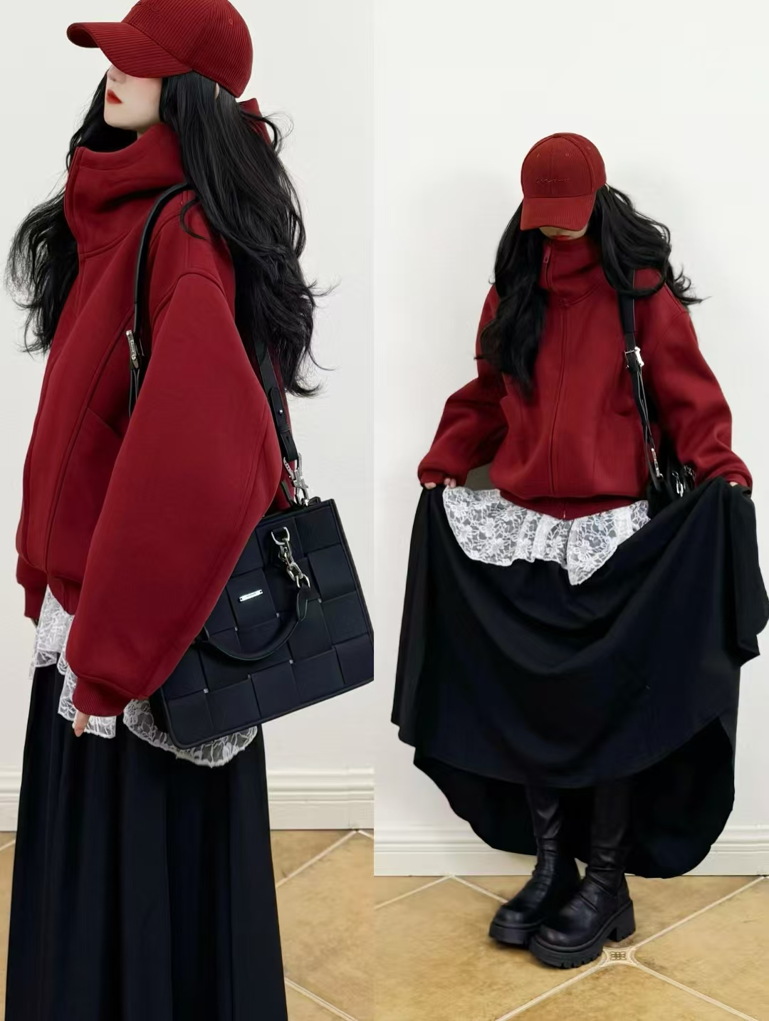 红黑配色的高级感还可以解锁更多搭配,任何单品都可以选择黑红配色,妥妥的新年战袍。