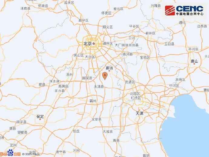 河北廊坊发生4.2级和2.9级地震,北京、天津有震感
