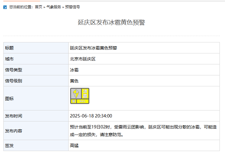 北京4区发布暴雨黄色预警,18日夜间起有强降雨