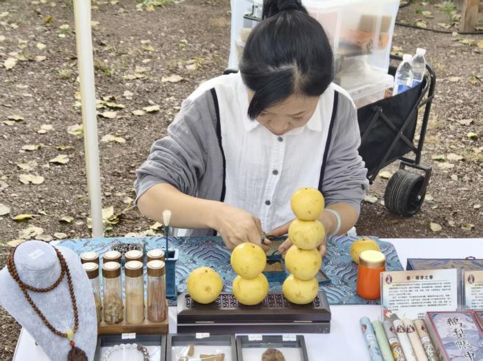 活动现场,“诗画乡村・沟(go)有趣”村字系列活动品牌发布,标志着门头沟区全新乡村活动品牌正式亮相。图为军庄的京白梨及相关制品。