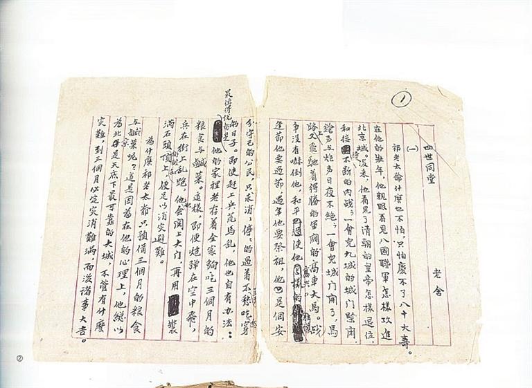 1946年3月,老舍应邀访问美国,在这期间完成了第三部《饥荒》,还与翻译家浦爱德合作,将《四世同堂》全部译成英文,于1952年在纽约出版。后来,小说还被翻译成日文本、法文本、德文本、越文本等。