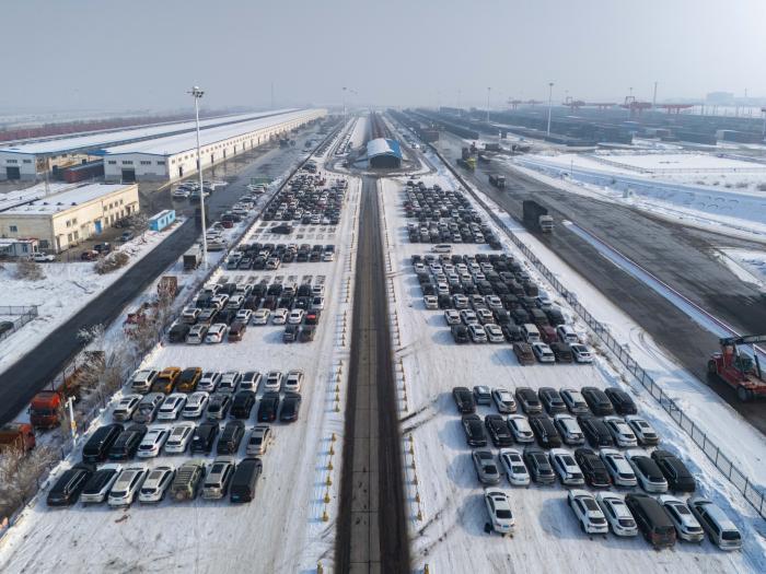 2026年以来,汽车托运业务订单量呈显著增长态势,越来越多的人选择给爱车买一张春运火车票。这是1月31日在新疆乌鲁木齐拍摄的中铁特货乌鲁木齐分公司三坪物流基地(无人机照片)。