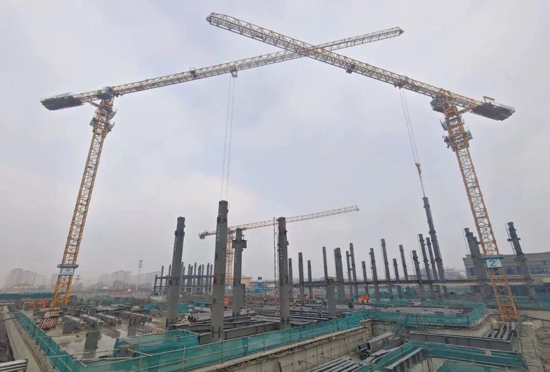 在医疗综合楼门诊区域,工人们正相互配合,进行首节钢柱吊装作业。随着塔吊的精准起吊、平稳到位、牢固安装,一根根钢柱有序矗立,为工程建设筑牢坚实骨架。