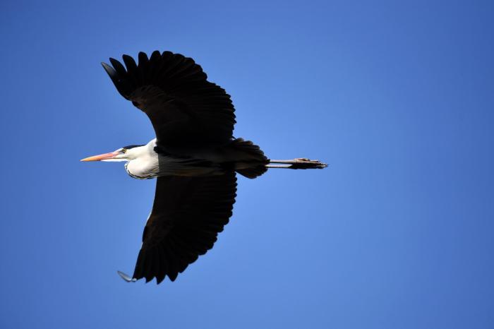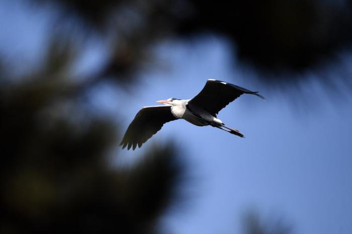 3月11日,在山西省吕梁市方山县积翠乡,苍鹭在空中飞翔。
