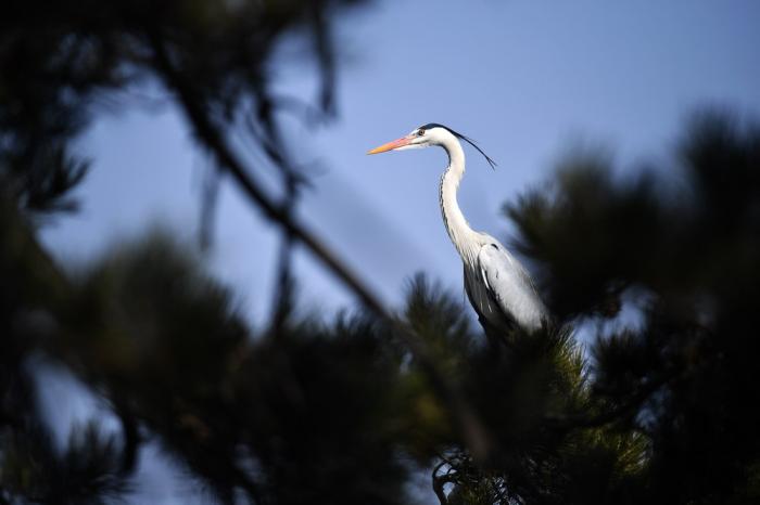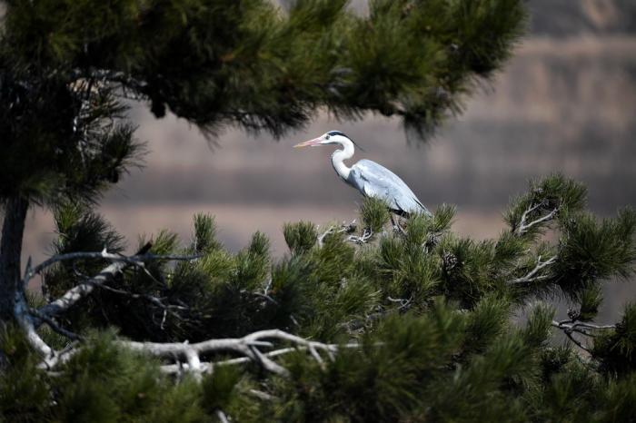 3月11日,在山西省吕梁市方山县积翠乡,苍鹭在林间栖息。