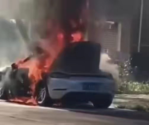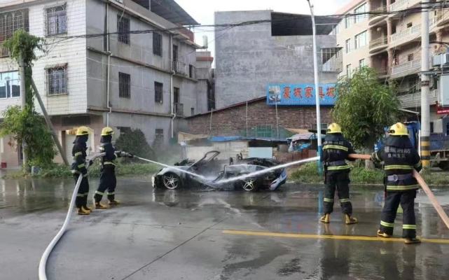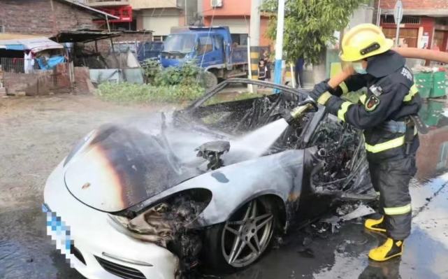 10月7日,一段保时捷在路边起火燃烧的视频在网络上流传,视频中显示,一辆白色的保时捷跑车停在路边燃起熊熊大火,并伴有大量黑烟冒出,随后消防员现场用水枪将大火扑灭。