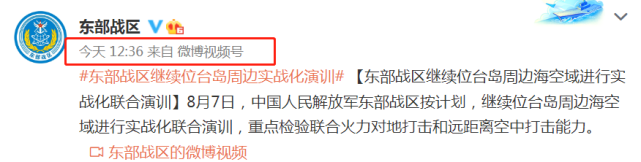 在演训原计划结束的时间点(8月7日12点)之后,东部战区微博今天12点38分发布上述消息。