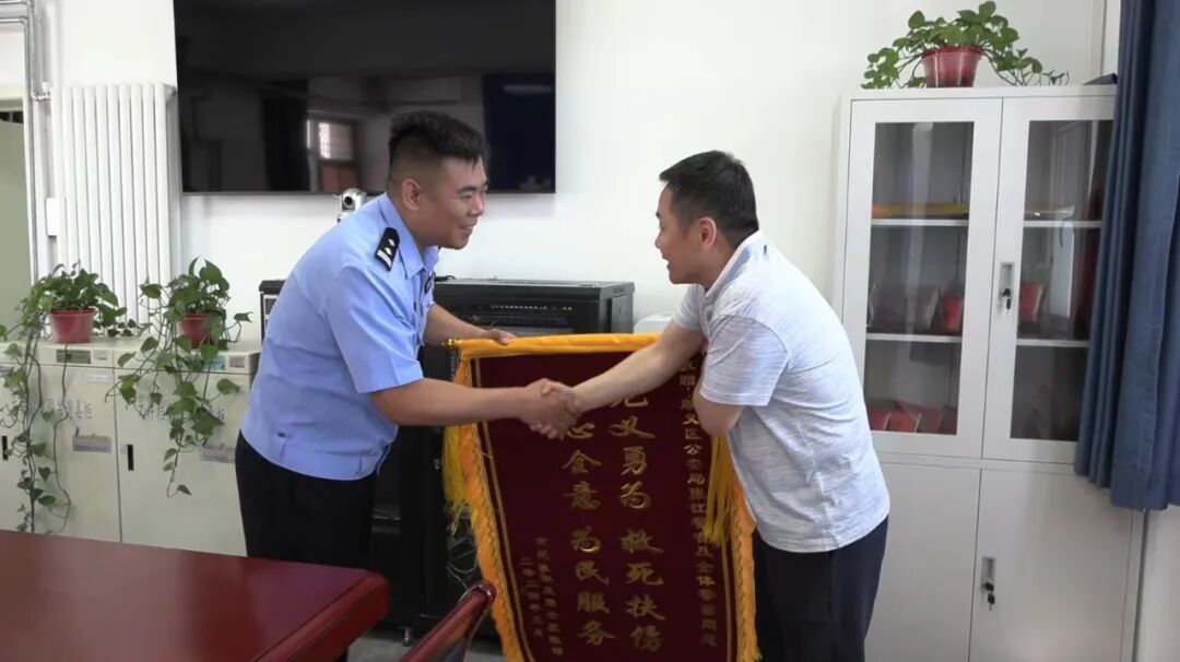 5月29日,肇事女司机送来了一面写有“人民警察为人民,危急时刻伸援手”的锦旗;5月31日,被撞人家属送来一面写有“见义勇为,救死扶伤,全心全意,为民服务”的锦旗和一封感谢信。