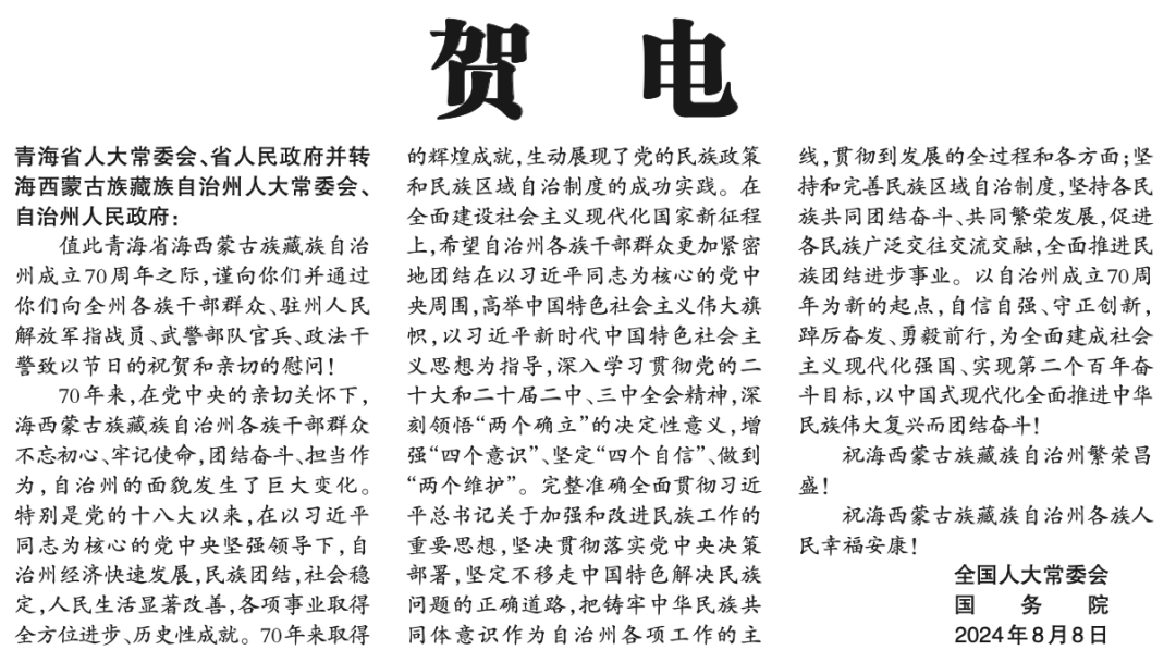 最近5天,中央有关部门祝贺团赴青海,参加了两场庆祝活动: