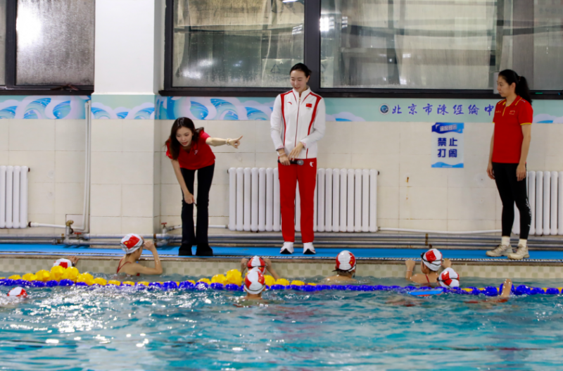 “冠军体育课”环节,冯雨化身“特派教练”,带领同学们走进游泳馆。她演示花游基础礼仪、拆解水下动作要领,还邀请同学体验憋气练习,在趣味互动中让大家感受“水中芭蕾”的魅力,更体会到冠军光环背后的汗水与坚守。