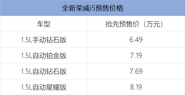 全新荣威i5正式开启预售 抢先预售价6.49万元起